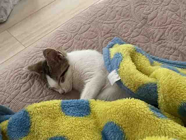 もうすでにおうちに馴染んでリラックスしてる感じがしますね。みーちゃんも家族ができて幸せそうです。